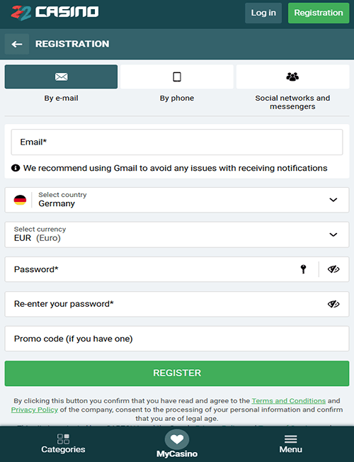 lesz szükséged. Ezután pedig szabad utat kapsz a 22Casino összes játékához és bónuszához.