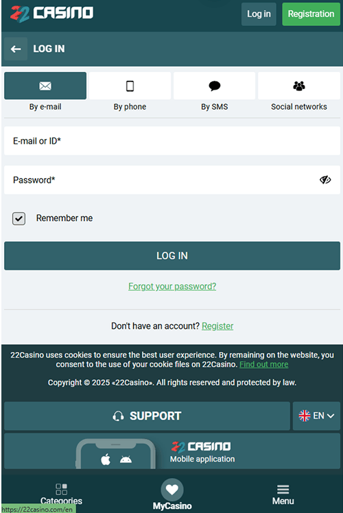 Regisztráció és bejelentkezés I 22Casino