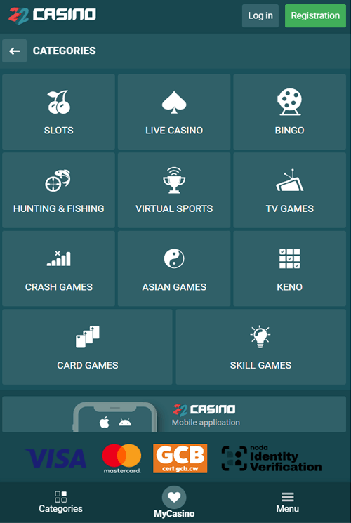 bónusz és funkció ugyanúgy megtalálható a 22Casino applikációjában. A ki- és befizetések ugyanolyan