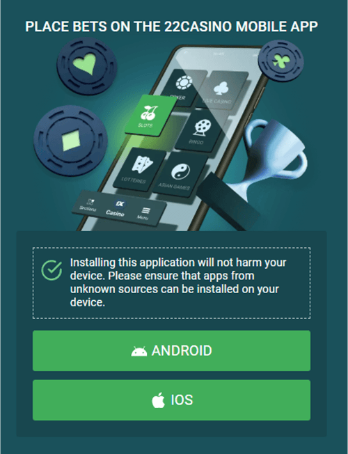 találod az alkalmazást, a 22Casino oldalán találni fogsz egy APK fájlt, aminek a segítségével már